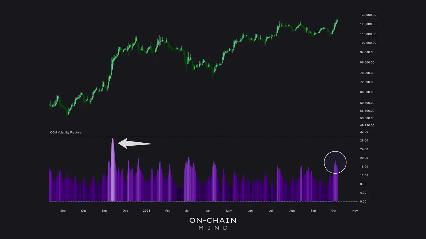 Recently, the metric spiked near the 20 mark during the latest rally, signalling that the market is finally waking up. Historically, when volatility fractals enter the 30s, it often precedes explosive upside — the kind of momentum that propels Bitcoin into its runaway phases.