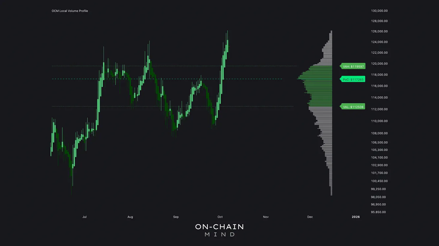 Structural Support at $117,000: The point of control forms a resilient “volume shelf”, offering healthy consolidation potential before the next impulsive leg higher.