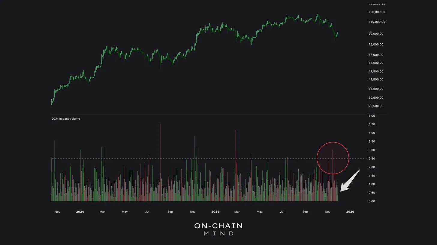 In essence, order flow divergence shows whether price action is driven by real commitment or drifting on weak conviction. And the fact the spike is this extreme, with price only recovering to the low $90,000s, tells me buyers are quietly establishing dominance.