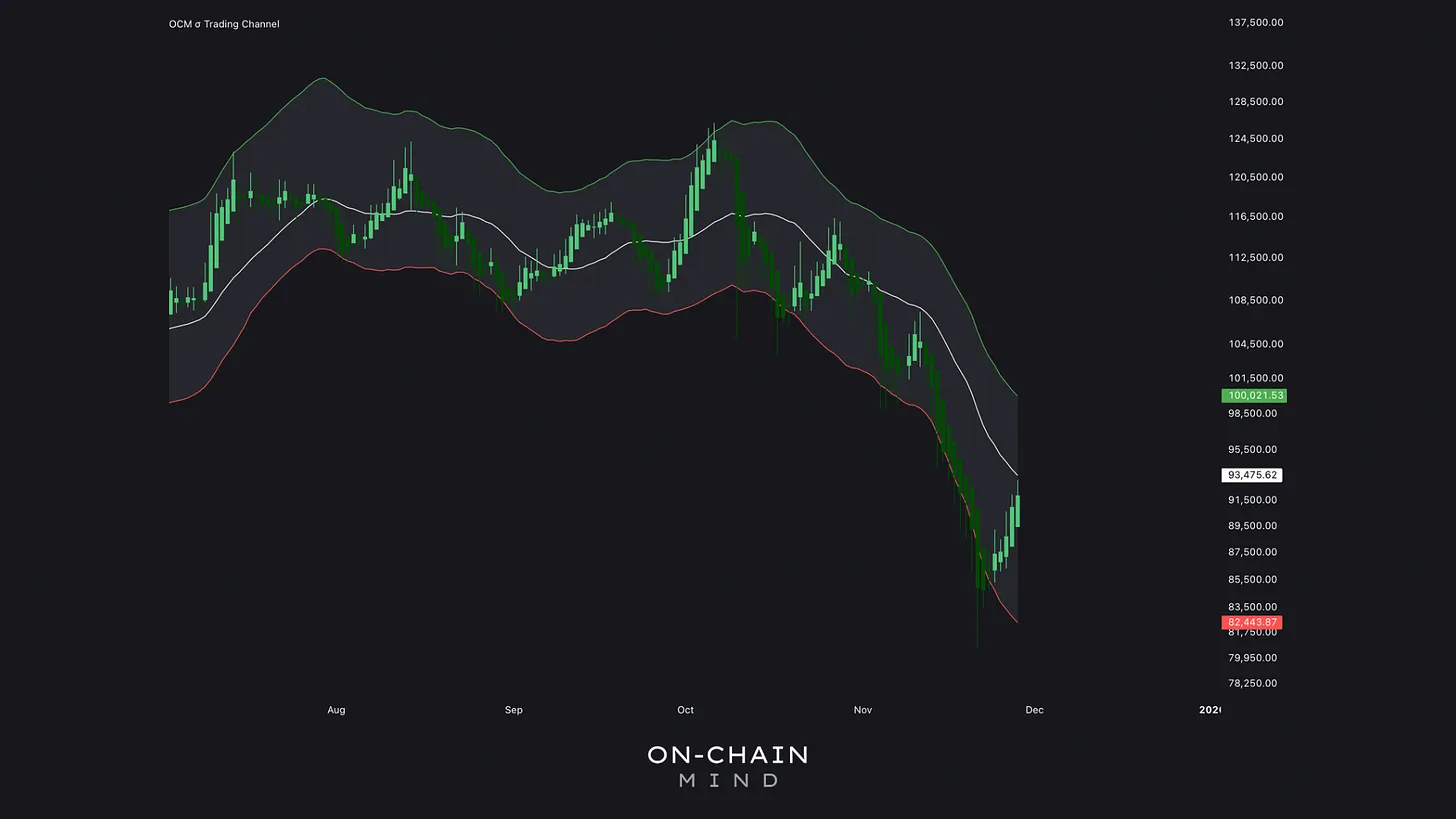 σ Channel Structure: Price is oscillating exactly as it should after breaching the lower boundary; $93,000 fair-value reclaim is the current line in the sand.
