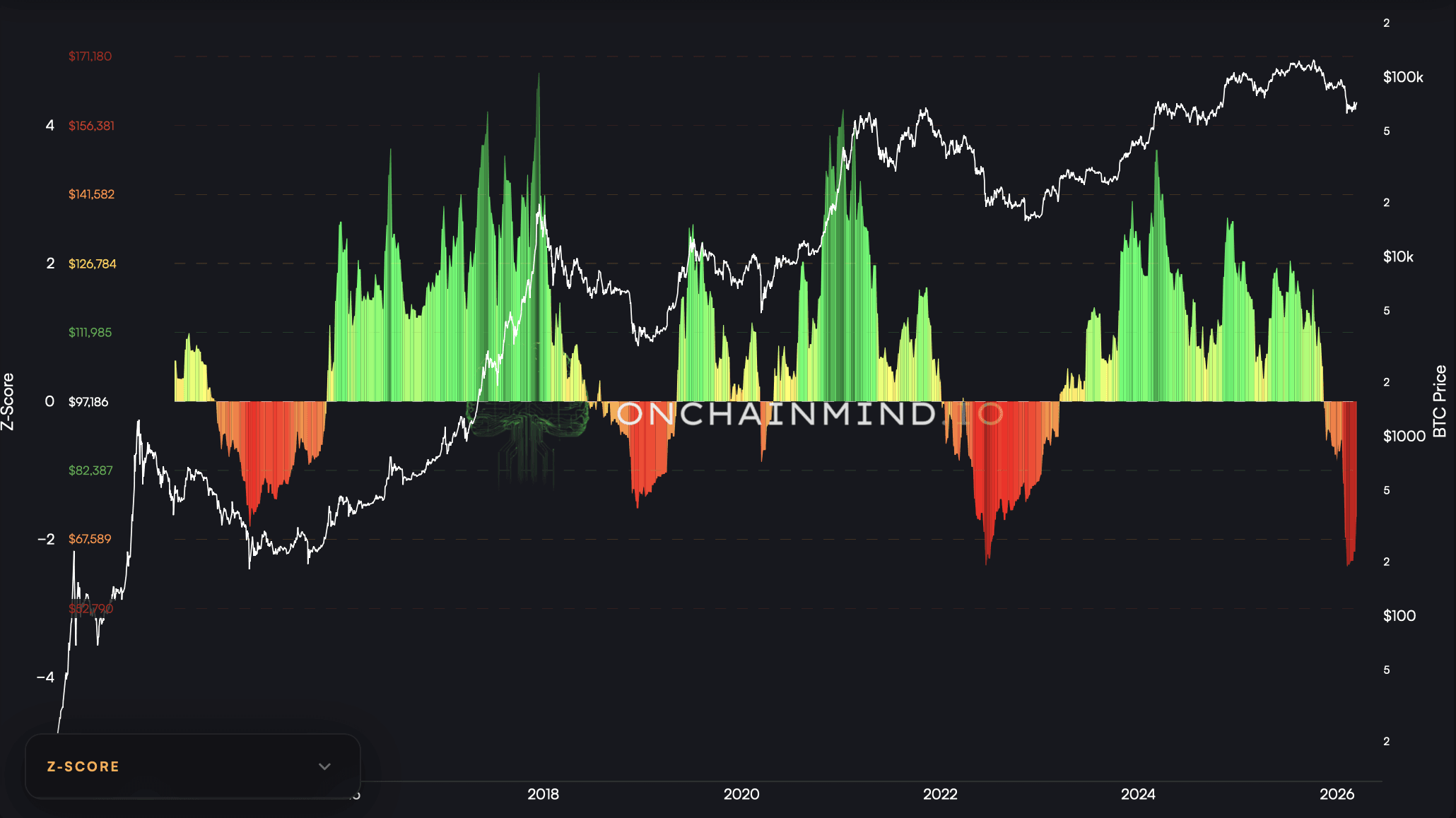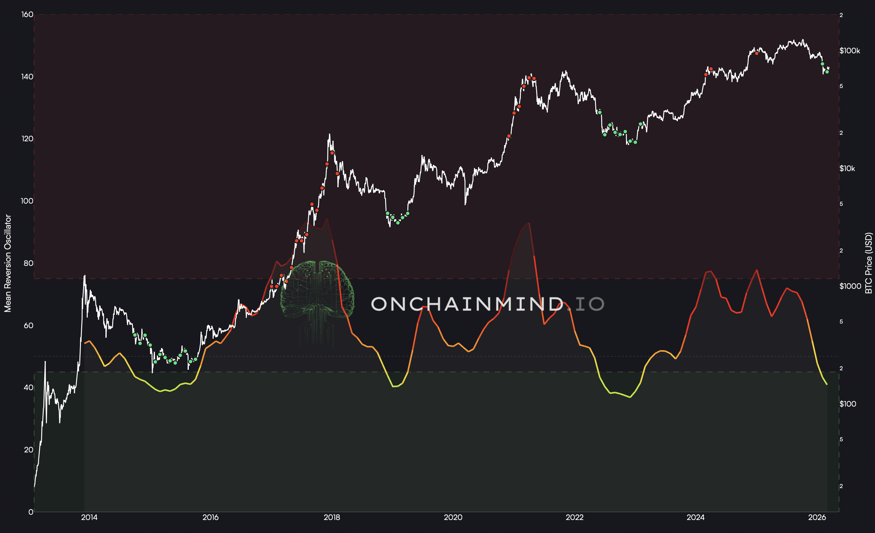 Our second lens is the Mean Reversion Oscillator. While the LTH metric is about on-chain reality, this is about pure momentum and price psychology.