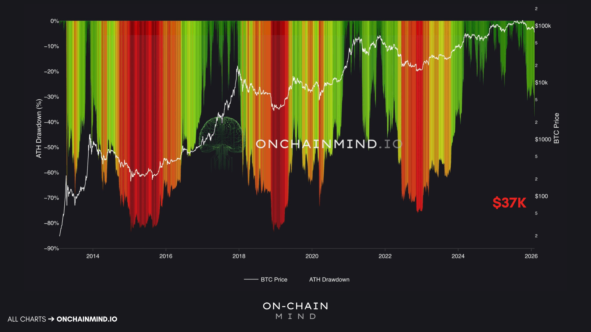 Every major Bitcoin cycle so far has ended its bear market with a deep structural reset. Price declines of over 70% from peak to trough are not anomalies; they are the historical norm. we were to follow that "standard" script from our $126,000 high, we would be looking at a Bitcoin price near $37,000.