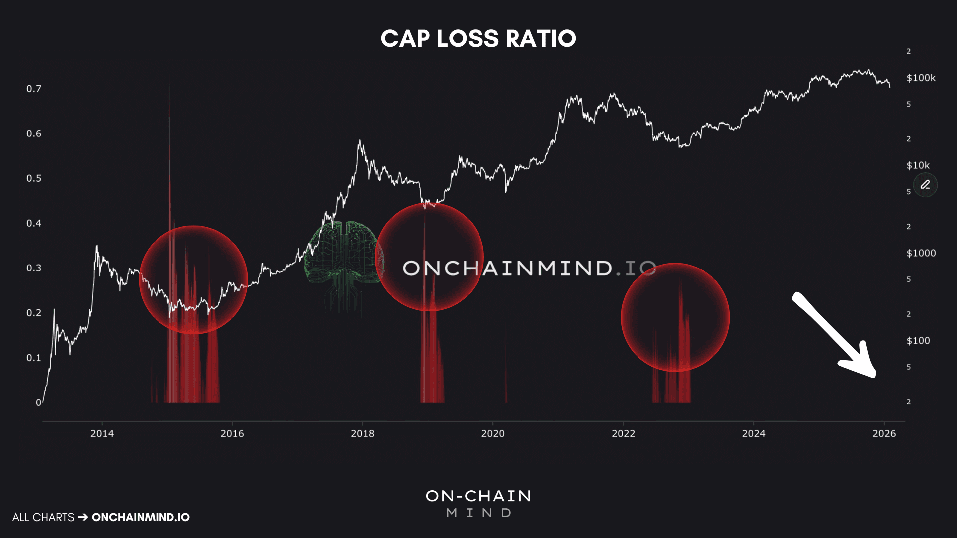 One of the most telling metrics here is what I call the Cap Loss Ratio. This is a network-level indicator designed to measure how much of the Bitcoin ecosystem is underwater at any given time.