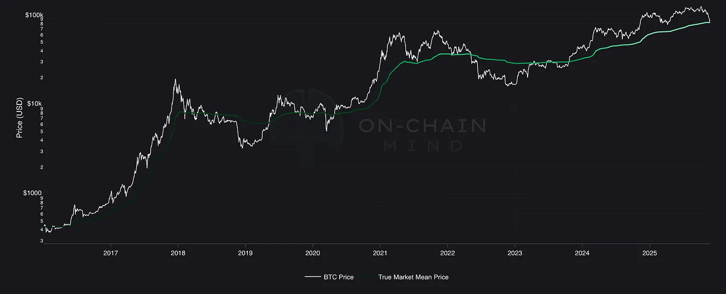 In that world, price would likely orbit the True Market Mean — the average acquisition cost of all Bitcoin in existence (excluding Satoshi-era coins). That currently sits around $81,000. I would expect messy two-sided volatility ±$10k around that level until macro conditions eventually improved.